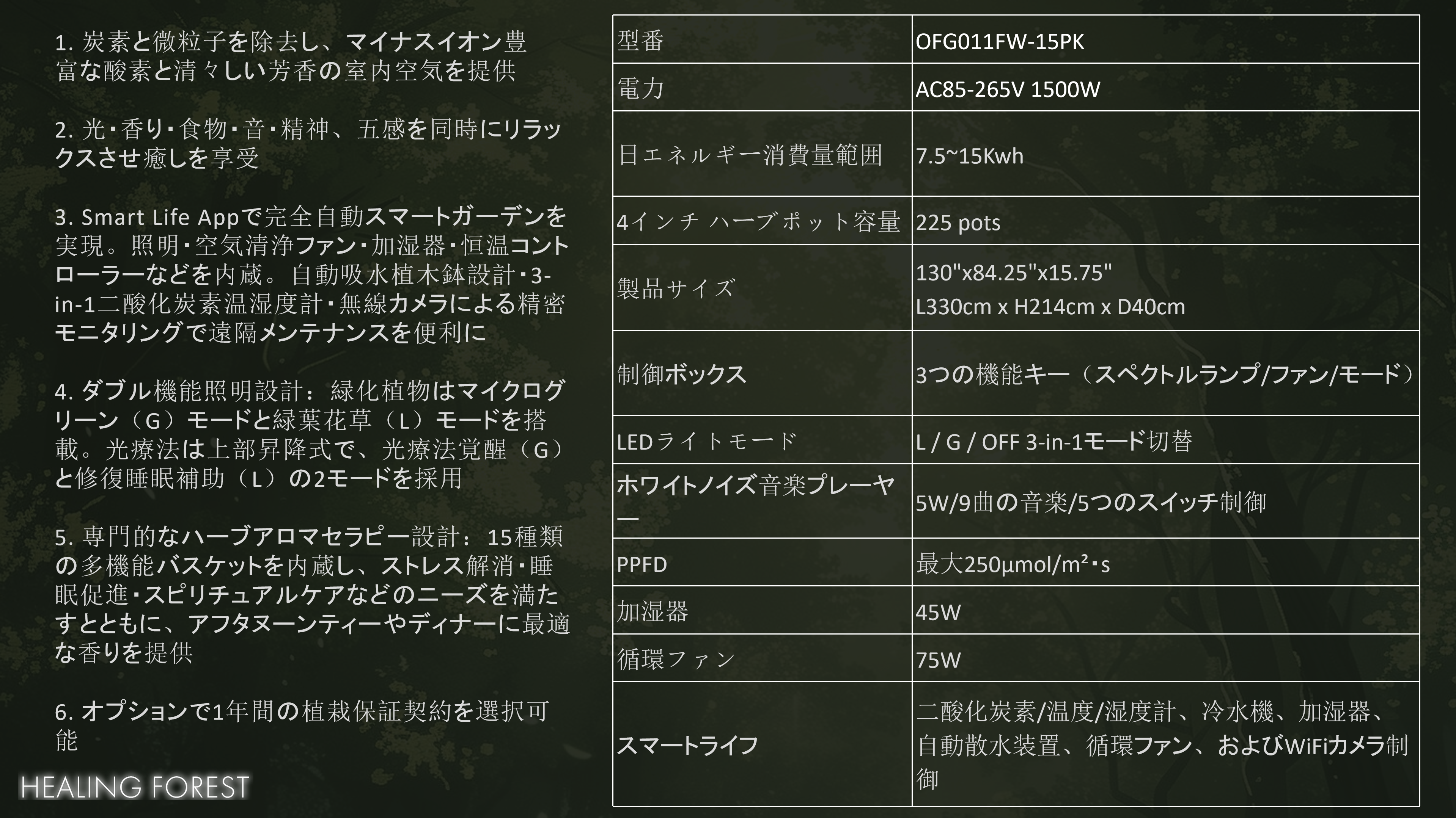 ネイチャー・タッチでラグジュアリーを再定義する 炭素浄化とダスト除去を行います。二重機能の照明ハーブウォール設計は、微グリーンやグリーンリーフ、花草植物の栽培に適しており、五感を癒しながら、起床と入眠サービスを提供します。Smart Lifeアプリと連携した自動スマートガーデンが、三合一のサンライト、エア、水設計を含み、リモートメンテナンスを簡単に行えます。 お問い合わせ 製品は2025年第一四半期に正式発売予定です。どうぞご期待ください!
