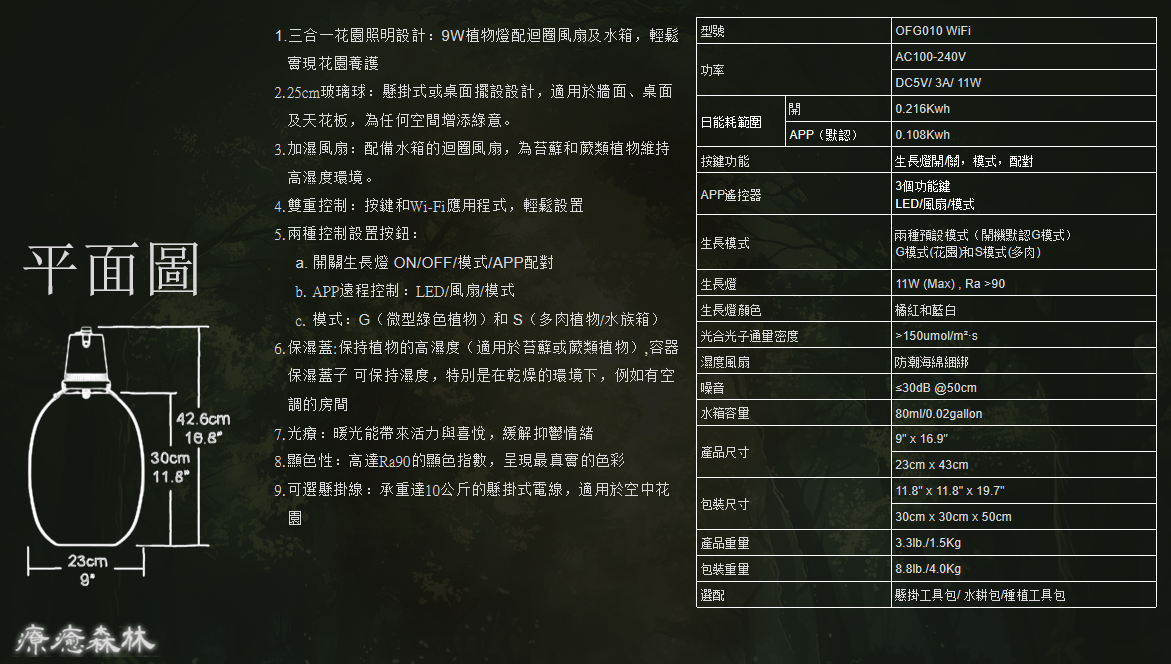 創新3合1植物燈,配備陽光、空氣、與水功能,模擬不同生長環境。保濕設計,適合種植微綠、苔蘚類植物。可隨心擺放,為任何空間注入自然、有質感的清新與綠意,是辦公室、家居或商店的理想選擇。
