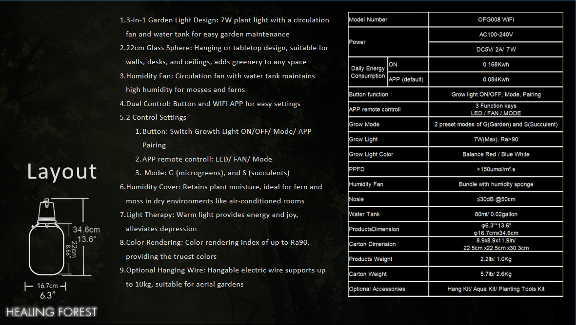 Innovative 3-in-1 grow light equipped with sunlight, air, and water functions to simulate various growth environments, ideal for succulents, cacti, and more. Perfect for offices, homes, stores, and anywhere to bring a touch of nature and refreshing greenery to any space.